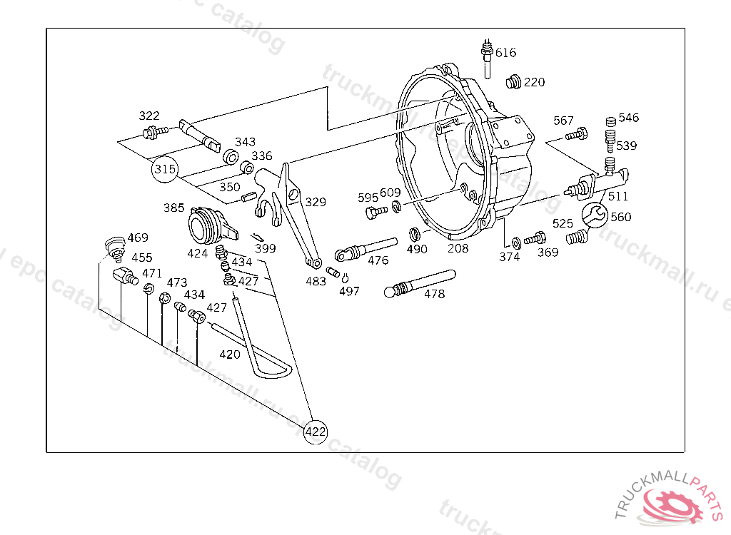 BELL HOUSING , FIRST EXHAUST STOCK OF OLD PARTS UP TO IDENT NO. 5 328362, Replaced By: A6202511601