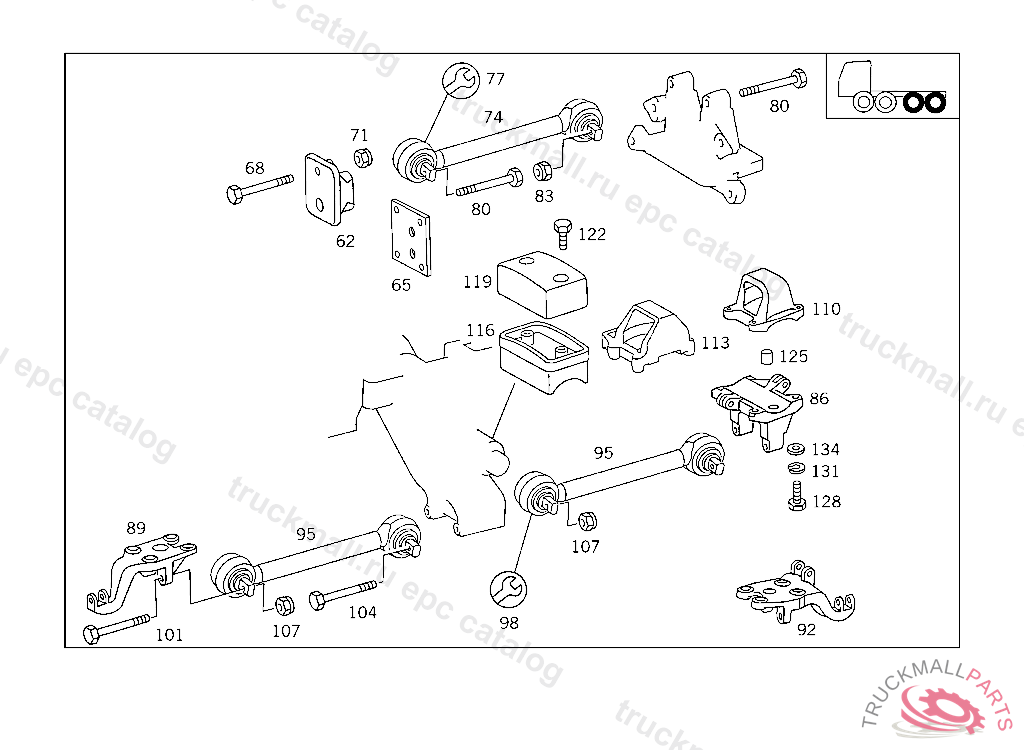 RUBBER BUFFER SPRING SEAT AND BEARING BRACKET TO REAR AXLE