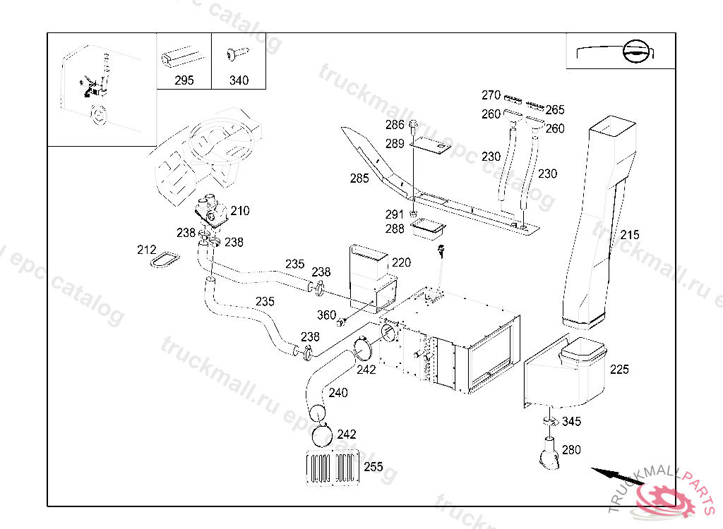 HOSE BETWEEN HEATER AND DRIVER'S SEAT PEDESTAL 90 MM