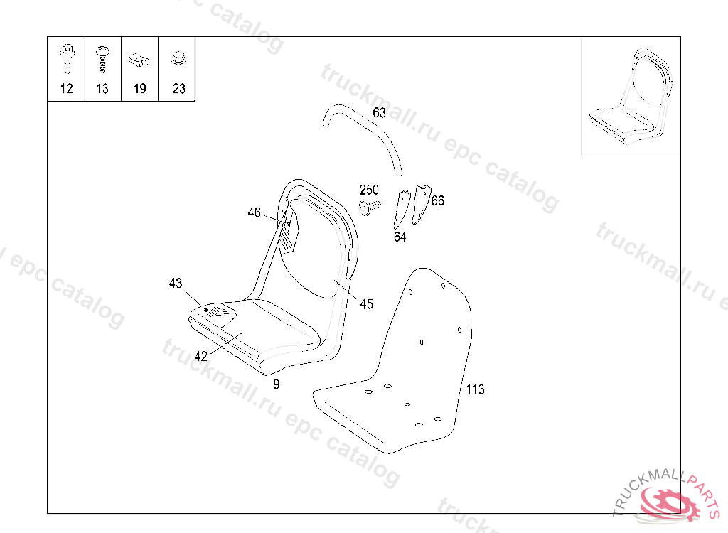 BACKREST PASSENGER SEAT, ONE-AND-A-HALF SEAT, TO BE ORDERED ONLY ON COMMISSION AND INDICATING ALSO ALL THE VEHICLE DATA REQUIRED