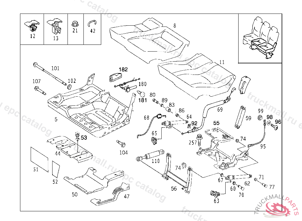 CUSHION FRAME LEFT, A 145273 X 707756 EXCEPT CODE 809 ALSO INSTALLED IN VEHICLE TO A 145272, X 707755 WITH CODE 800