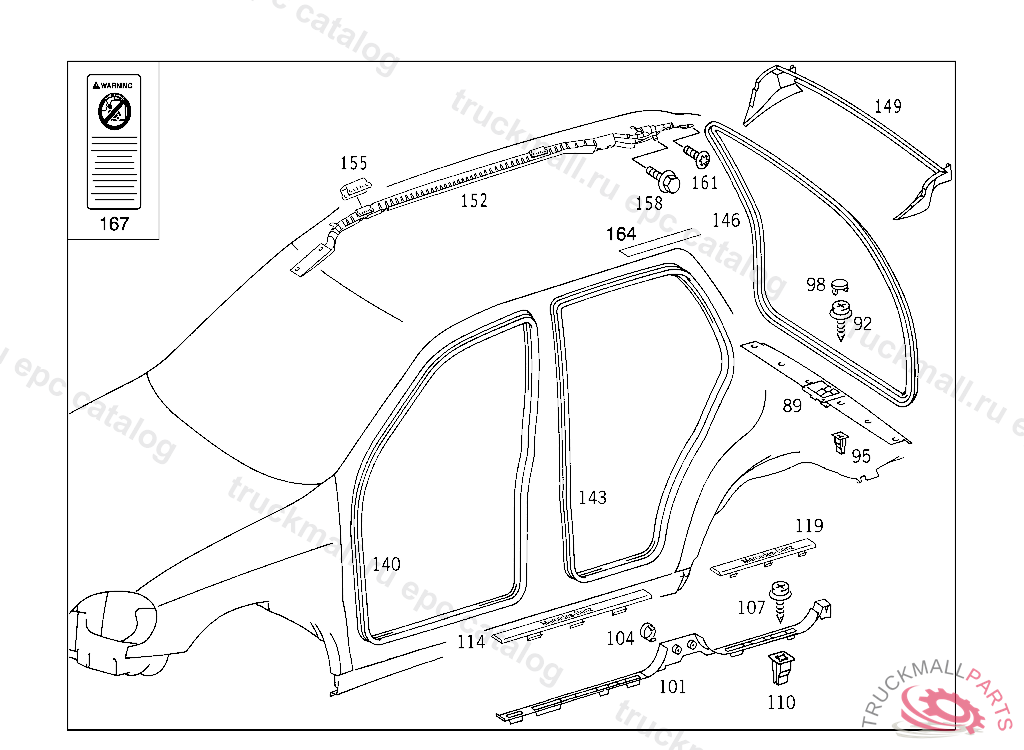 COVERING AT ROOF REAR RAIL