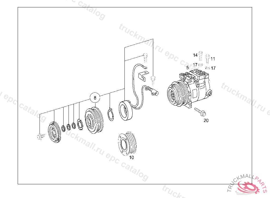 COMPRESSOR , FROM MODEL YEAR 2002 - CODE 802 163 A 299267 163 X 755659 203 A 237174 203 F 177685 203 R 028782 210 B 438527 210 X 065665 463 X 127404 902 - 904 337627 SEE CHASSIS PARTS KIT FOR "FROM VIN" NO.