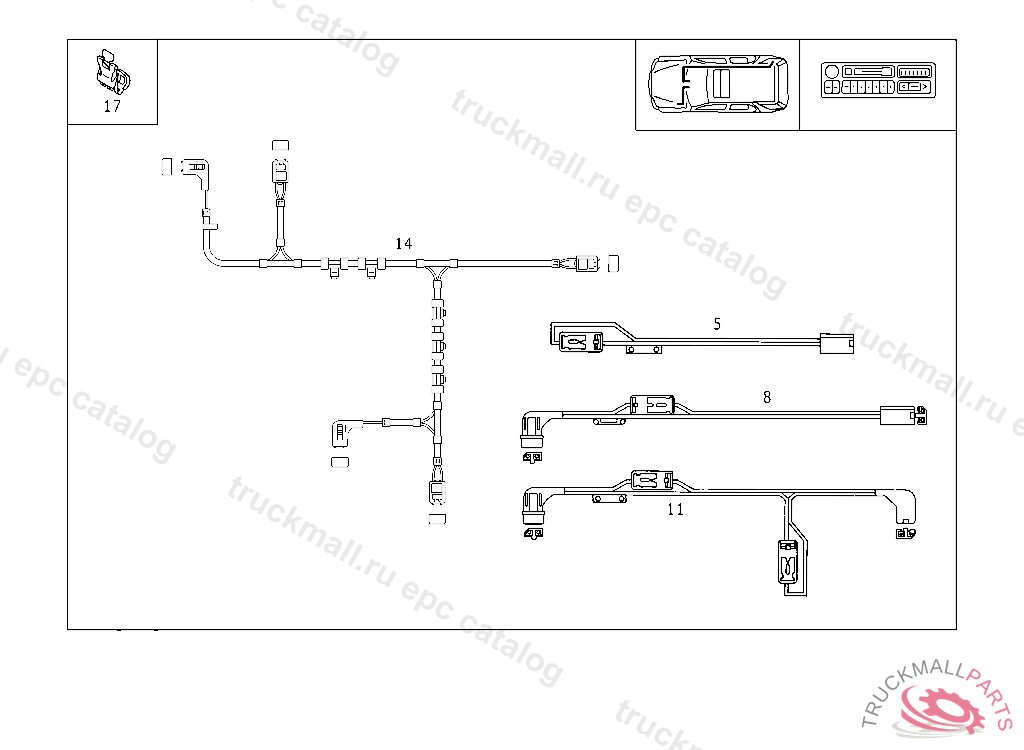 CABLE HARNESS CD-CHANGER TO RADIO, A 145273 X 707756 EXCEPT CODE 809 ALSO INSTALLED IN VEHICLE TO A 145272, X 707755 WITH CODE 800