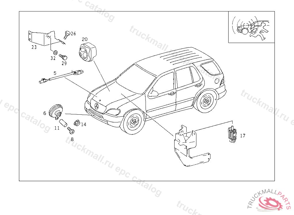 ALARM UNIT SIREN, F 136789(COUPE) T 000730(COUPE), T 054271(CABRIO) EXEPT ON VEHICULES WITH CODE 801 ALSO INSTALLED IN VEHICLE FROM T 000731(COUPE), T 054272(CABRI O), F 136790(COUPE) WITH CODE 800