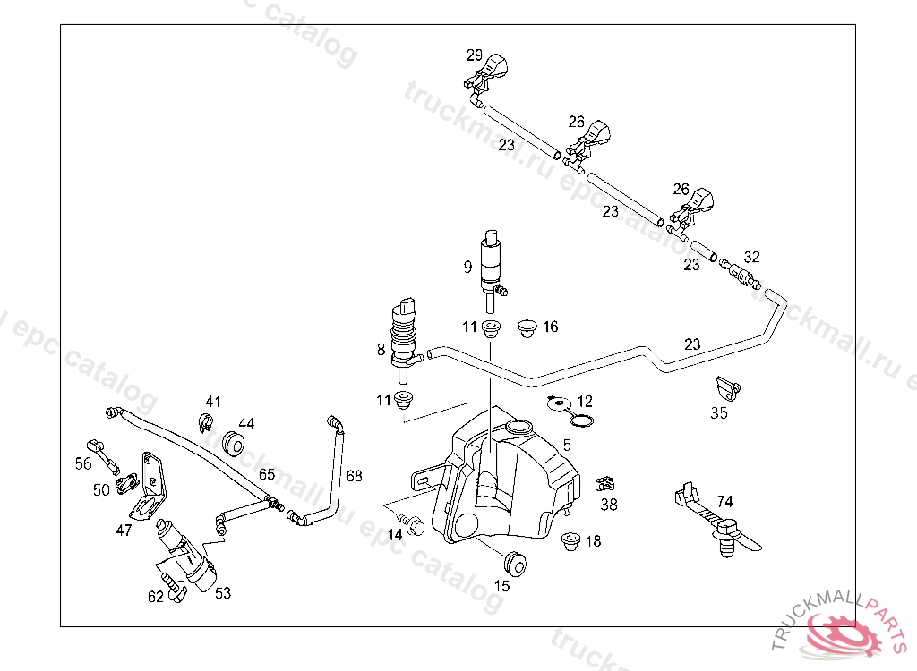 WATER CONTAINER PANE WASHER, ORDER ADDITIONALLY: 1X A 210 987 00 45, 1X A110 987 09 44 UP TO END OF MODEL YEAR 1999