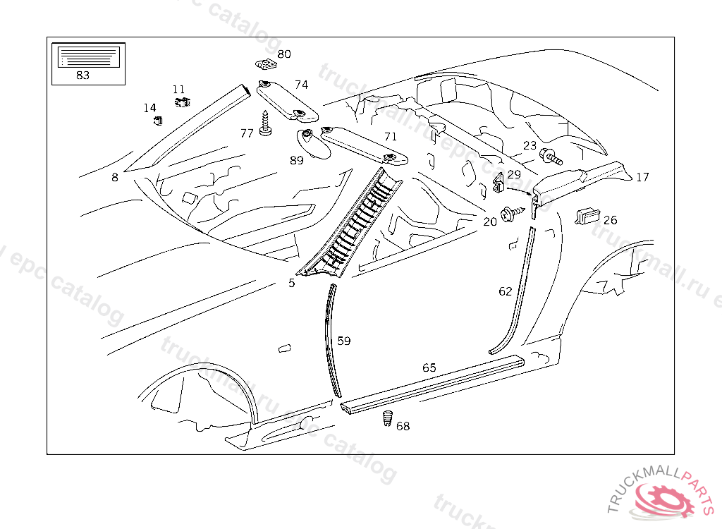 LOCK. FUSE SUN VISOR TO ROOF RAIL, Replaced By: A0039948745