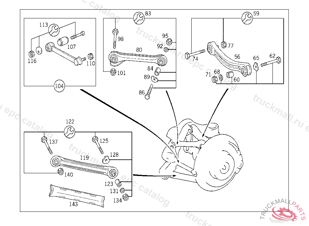 THRUST ARM , UP UNTIL BOLTED CONNECTIONS ON WHEEL CARRIER,THRUST ARM,CAMBER ARM AND RADIUS ROD WERE STANDARDIZED FROM M10 TO M12, Replaced By: A2103503806, +001A2103504506, +001A2103520043
