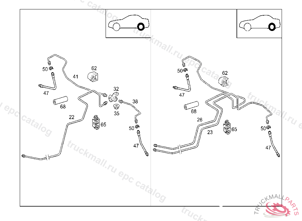 LINE HOLDER FASTENING, RIGHT FRONT WHEEL BRAKELINEAT FIREWALL, Replaced By: A0029951577