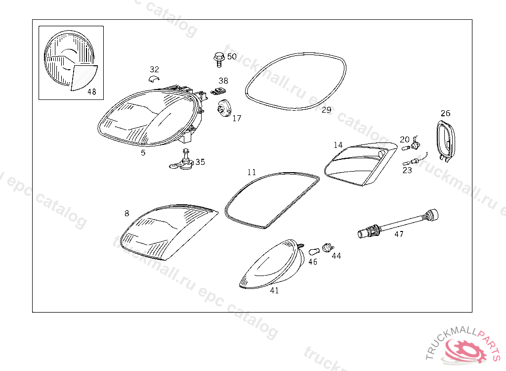 LIGHTING UNIT RIGHT,RIGHT-SIDE TRAFFIC, FOR FIRST CONVERSION,ORDER ADAPTER A1708201115 ADDITIONALLY