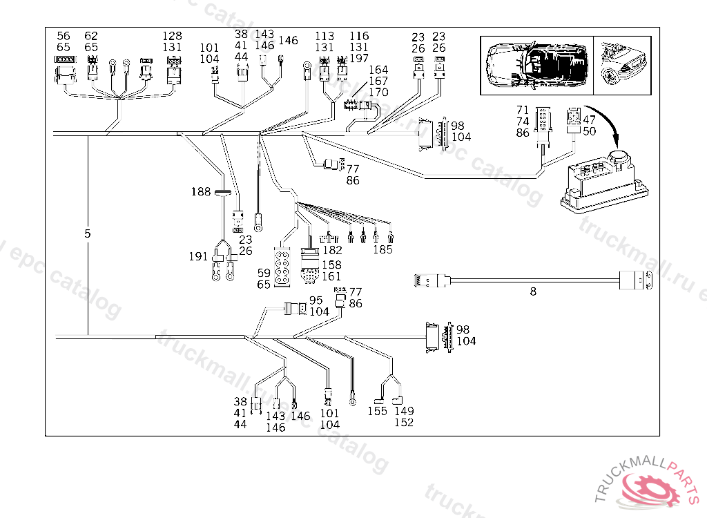 CABLE HARNESS ,F 043163 F 080358 EXCEPT CODE 809 ALSO INSTALLED IN VEHICLE FROM F 080359 WITH CODE 808