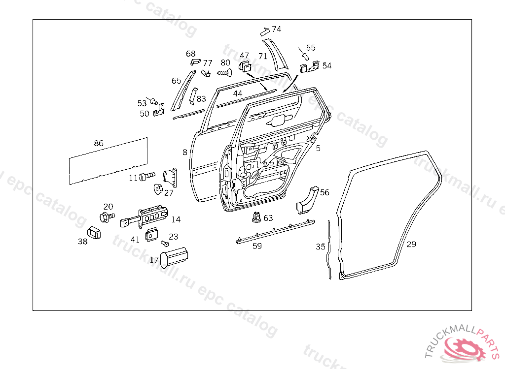ORNAMENTAL COVER RIGHT REAR DOOR SPORT, A 344661 F 331441 EXCEPT CODE 805 ALSO INSTALLED IN VEHICLE TO A 344660, F 331440 WITH CODE 806 A 519673 F 619720 EXCEPT CODE 808 ALSO INSTALLED IN VEHICLE FROM A 519674, F 619721 WITH CODE 807