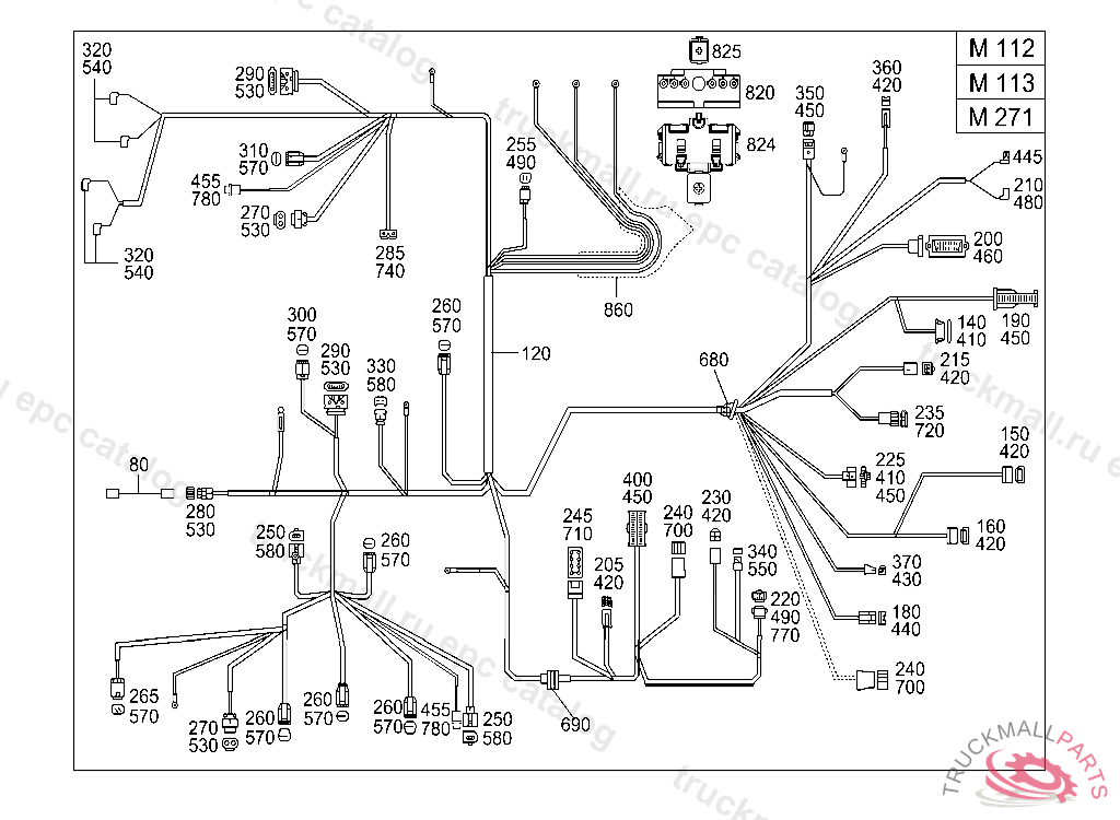 INSULATING SLEEVETO 000 546 83 40, A 218852 EXCEPT FOR A 103237 - A 218851 WITH CODE 030 F 190065 EXCEPT FOR F 159752 - F 190064 WITH CODE 030 AS OF IDENT-NO.: FOR HEADLAMP WIRING HARNESS REFER TO TU 54/121, WITH AIR CONDITIONER REFER TO TU 54/485 ALSO INSTALLED ON A 219847