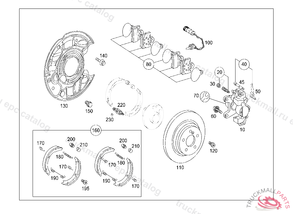 TS BRAKE PAD PARTS KIT, WITHOUT WEAR SENSOR, WHEN SELLING BRAKE LININGS TO END USERS/DESK BUYERS THE A 203 005 25 99 IS TO BE HANDED OVER FREE OF CHARGE