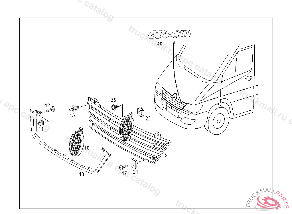 TYPE DESIGNATION AT RADIATOR GRILL, BOTTOM 616 CDI, R 42378520020628
