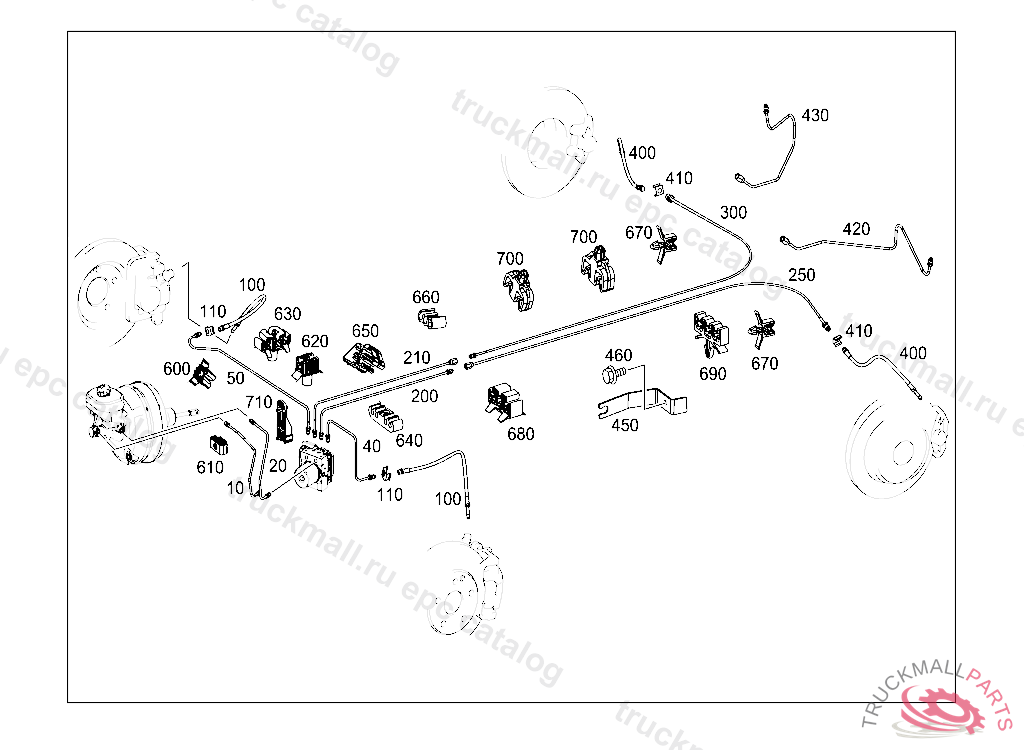 LINE FROM DISTRIBUTOR TO BRAKE HOSE ON REAR AXLE 415 MM,4 478330