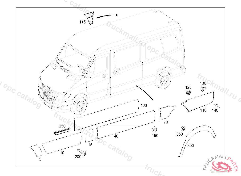 PROTECTIVE STRIP LEFT SLIDING DOOR, S 41343820090827 E 02720120091104 FIRST EXHAUST STOCK OF OLD PARTS UP TO IDENT NO. 20130719 E 08691920130913, Replaced By: A9066900800