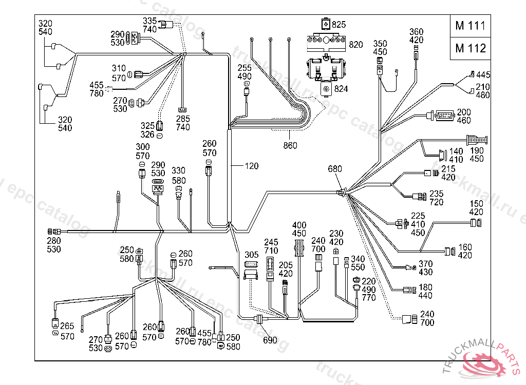 INSULATING SLEEVETO 000 546 83 40, A 218852 EXCEPT FOR A 103237 - A 218851 WITH CODE 030 F 190065 EXCEPT FOR F 159752 - F 190064 WITH CODE 030 AS OF IDENT-NO.: FOR HEADLAMP WIRING HARNESS REFER TO TU 54/121, WITH AIR CONDITIONER REFER TO TU 54/485 ALSO INSTALLED ON A 219847