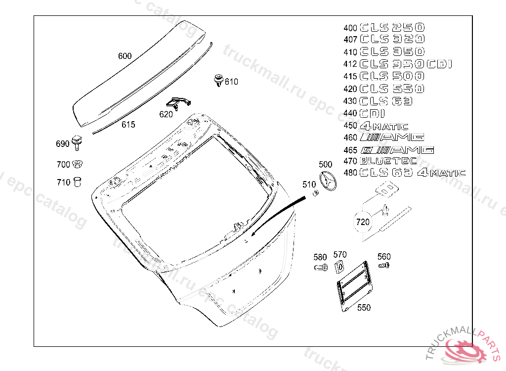 MODEL PLATE AT REAR PANEL DOOR CLS350