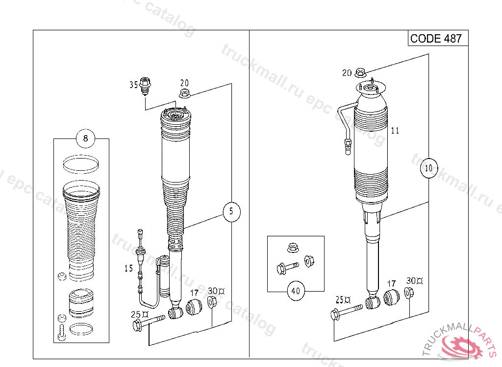 HYDROPNEUMATIC SPRING LEG REAR AXLE,RIGHT, A 27026920011130 PART IS ONLY OR ALSO SUPPLIED AS RECONDITIONED PART