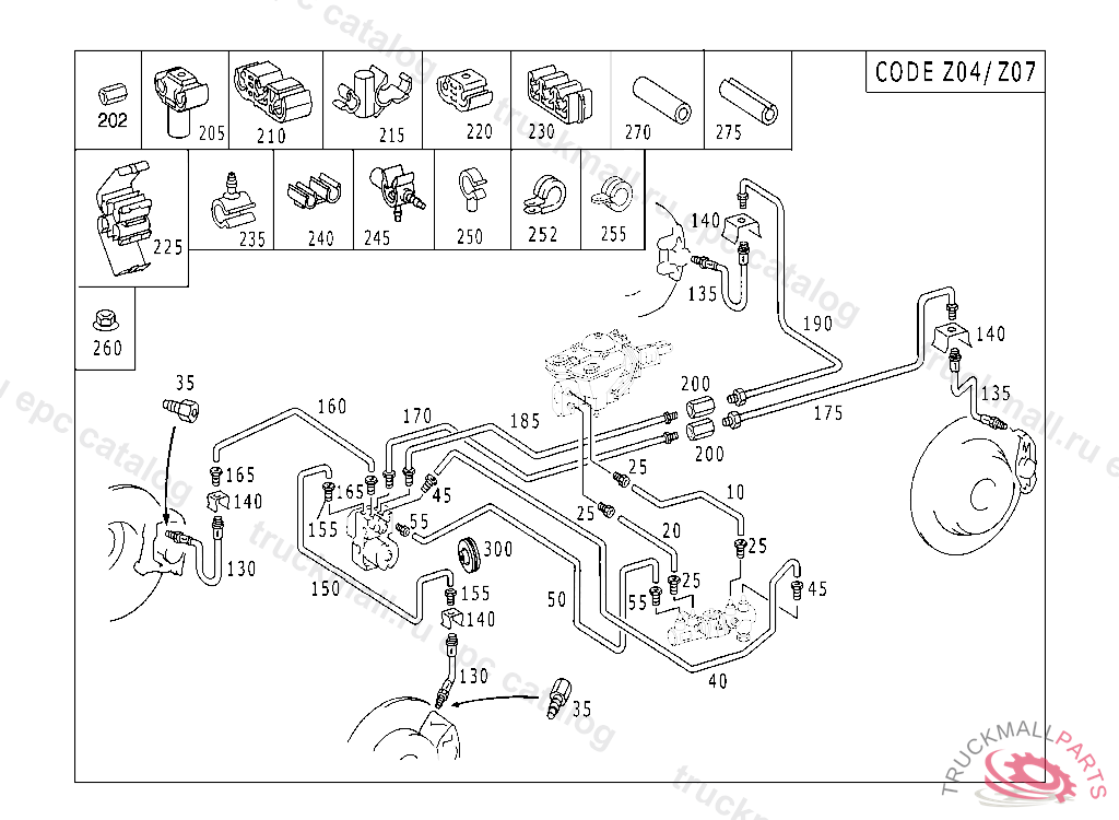 CLAMP SPACING OF BRAKE LINES, UP TO IDENT NO. A 212244 EXCEPT FOR A 187334 - A 212243 WITH CODE 867