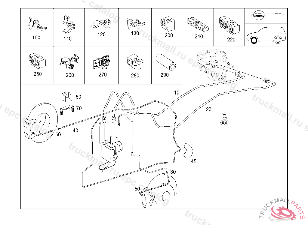 LINE HOLDER FASTENING, RIGHT FRONT WHEEL BRAKELINEAT FIREWALL, Replaced By: A0029951577