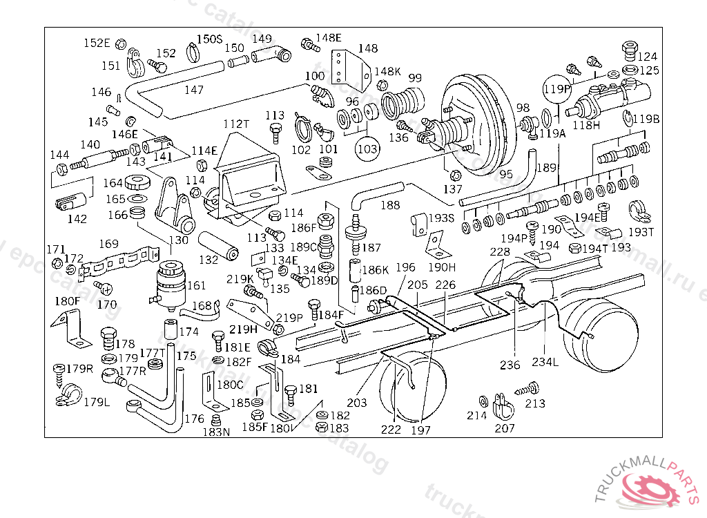 LINE FROM RESERVOIR HOSE TO BRAKE MASTER CYLINDER, ON TRUCKS,L.H.D.UP TO CHASSIS 145736 ALSO INSTALLED ON 145741,145768,145770,145774,145786,145787,145795 145697,145701,145807,145808,145819,145825,145830,145837,145840,145846,145860,145861,145888,145901, 145907,145910,145911,145913-145917,146138. EXCEPT FOR 139841,139842,140553,145397,145406,145409,145426,145445,145462,145660. ON TRUCKS,R.H.D.UP TO CHASSIS 148036 WITH EXCEPTION OF 140555,142078 ON BUSES,L.H.D.UP TO CHASSIS 018153 ALSO INSTALLED ON 018155,018156,018159,018308,018310,018315,018317,018318,018327,018350,01 8355 WITH EXCEPTION OF 017661,017829, ON BUSES,R.H.D.UP TO CHASSIS 018729