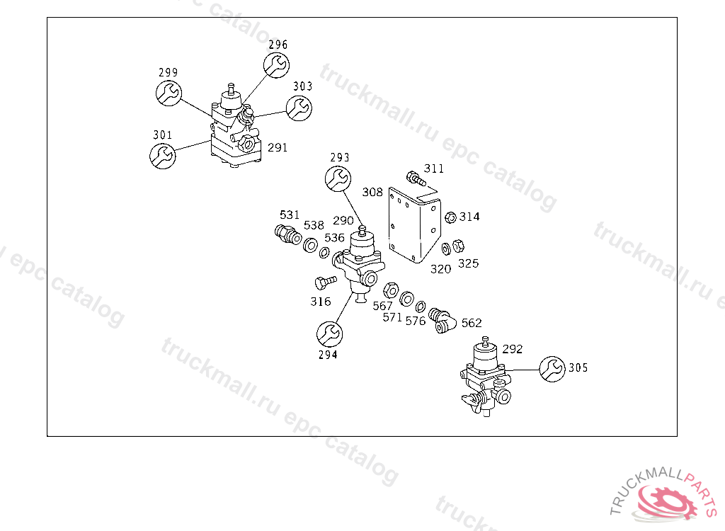 PRESSURE REGULATORWABCO, 620.415 UP TO CHASSIS 5 014668 620.416 UP TO CHASSIS 5 000515 620.417 UP TO CHASSIS 4 972023