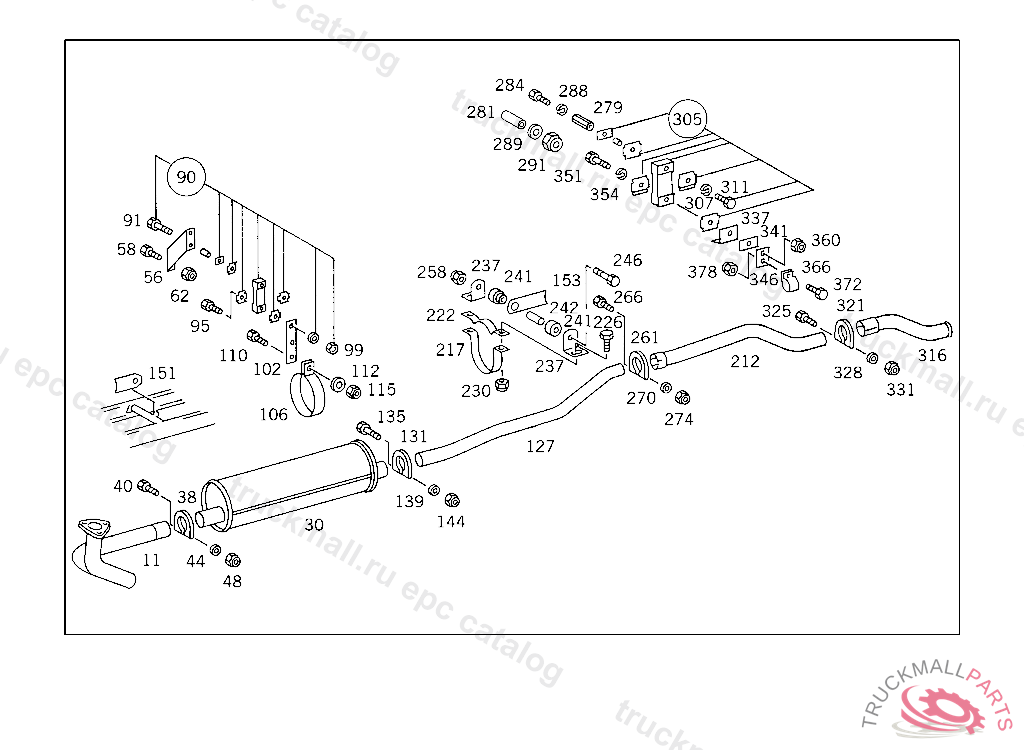 BRACKET REAR EXHAUST PIPE TO BRACKET AT SHOCK ABSORBER CROSS MEMBER,352291