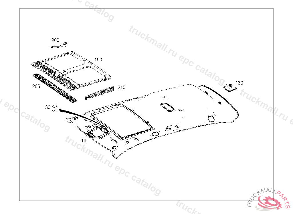 HEADLINER , FIRST EXHAUST STOCK OF OLD PARTS UP TO IDENT NO. A 26979720081128 L 02014220081031 V 00090020081031 F 29277420081130, Replaced By: A2047800240