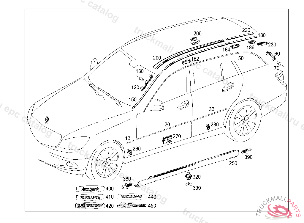 COVER STRIP FRONT RIGHT, 9040QFT204L0013 BLACK, Replaced By: A2046907862