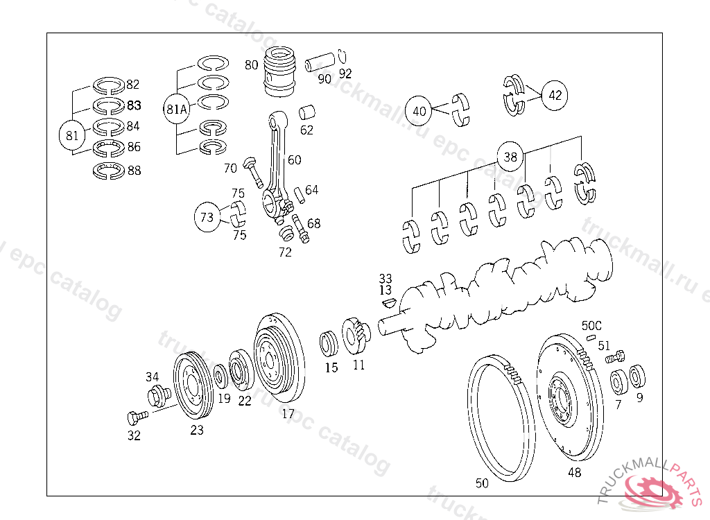 CRANKSHAFT BEARING MAIN BEARING PARTS KIT,FITTING SIZE 0,50