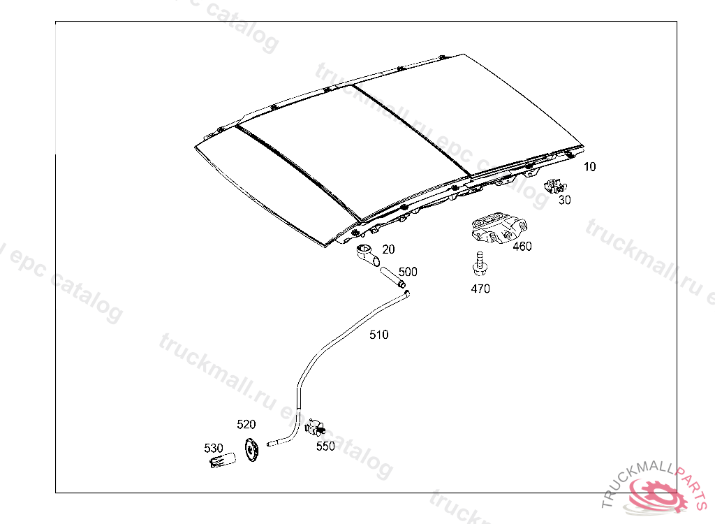 OUTLET PIPE AT PANORAMIC SUNROOF, FRONT