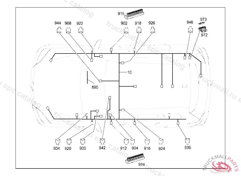 WIRING HARNESS FRAME FLOOR UNIT MAIN CABLE HARNESS, STATE IDENT NO. WHEN ORDERING THE CORRESPONDING SPECIAL EQUIPMENT IS CONTAINED IN THE WIRING HARNESS ACCORDING TO THE VEHICLE PRODUCTION NUMBER