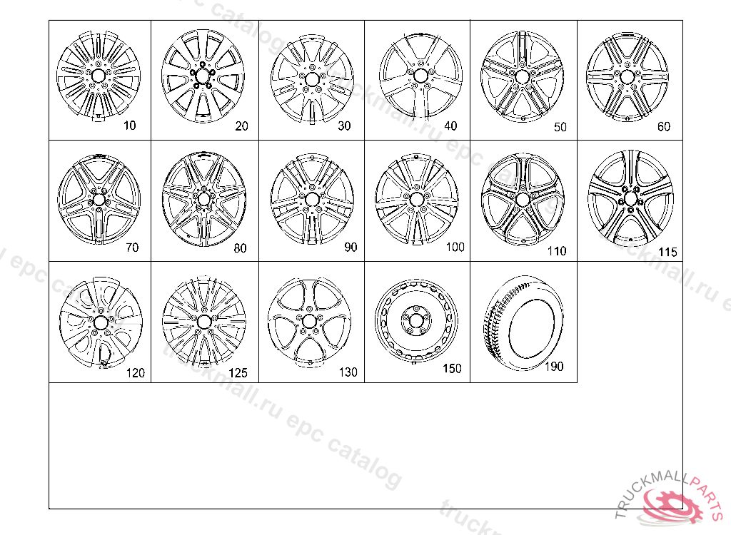DISK WHEEL 5-DOUBLE SPOKE WHEEL FRONT AXLE 8.0J X 19 H2 ET 44