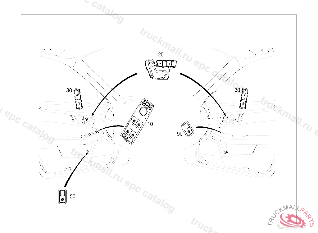 SWITCH BLOCK FOR CO-DRIVERS DOOR, 9107QFT204A1030 MIDSOFT BLACK