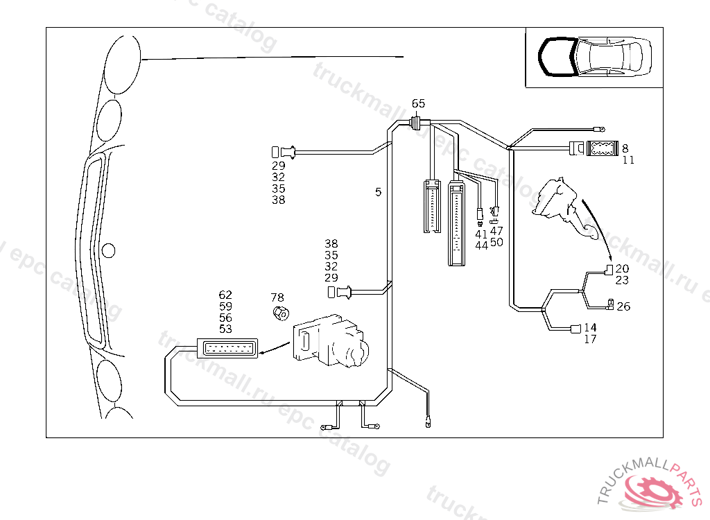 CABLE HARNESS ACCELERATION SKID CONTROL, ONLY FOR 202. F/G A 519674 F 619721 EXCEPT CODE 807 ALSO INSTALLED IN VEHICLE TO A 519673, F 619720 WITH CODE 808