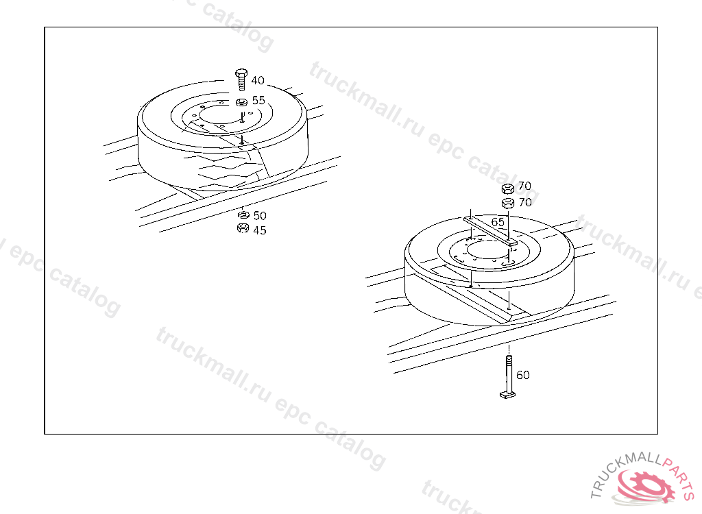 MOUNTING PLATE SPARE WHEEL TO CROSS MEMBER, USED WITH AIR BRAKE,FROM CHASSIS A 059729 ALSO INSTALLED ON: A 059166,A 059217,A 059218,A 059268,A 059276,A 059356-A 059359,A 059411,A 059418,A 059419,A 059525,A 059526,A 059594,A 059613, A 059625,A 059626,A 059647,A 059648.