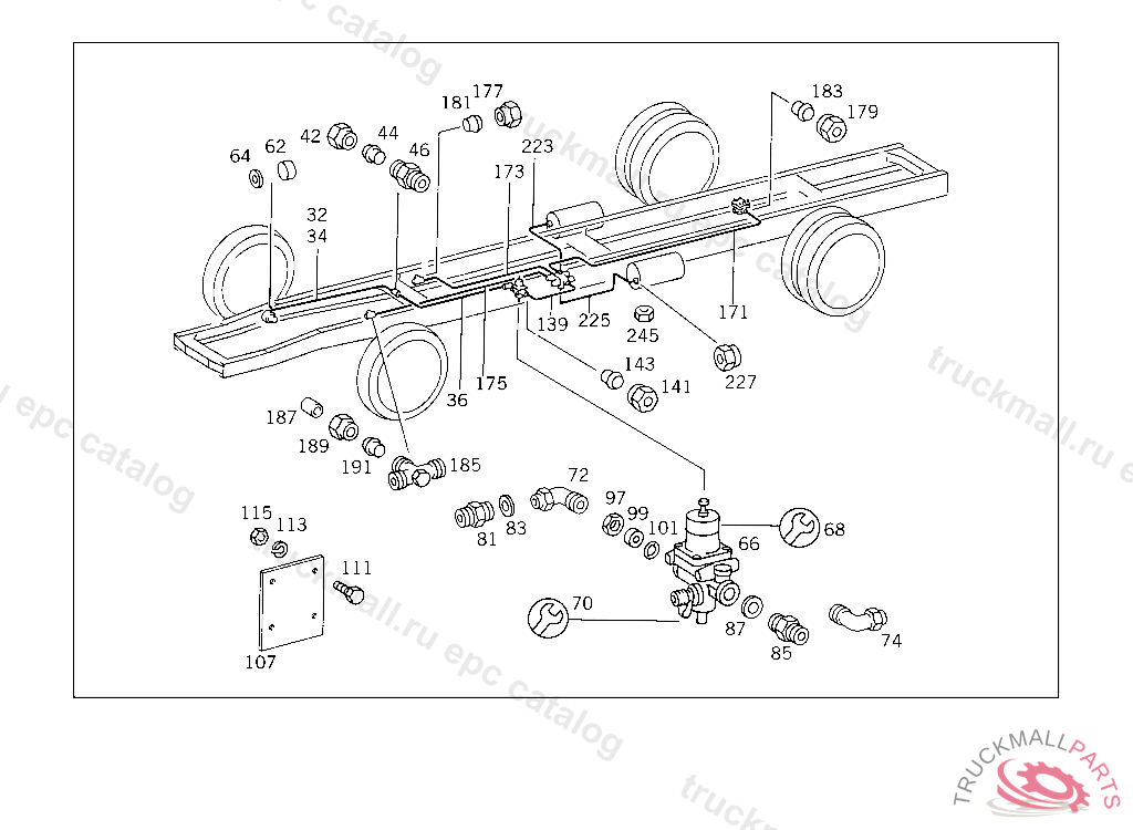 LINE FROM FOUR-CIRCUIT PROTECTIVE VALVE TO BRAKE LINE COUPLING 8 MM, USED WITH AIR BRAKE,FROM IDENT NO. A 059729 ALSO INSTALLED ON: A 059166,A 059217,A 059218,A 059268,A 059276,A 059356-A 059359,A 059411,A 059418,A 059419,A 059425,A 059426,A 059594,A 059613, A 059625,A 059626,A 059647,A 059648.