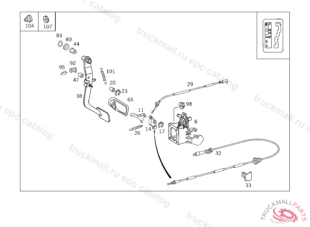 LEVER PARKING INTERLOCK MECHANISM DEPENDING ON BRAKE PEDAL, A 436536 F 483848 EXCEPT CODE 806 ALSO INSTALLED IN VEHICLE TO A 436535, F 483847 WITH CODE 807