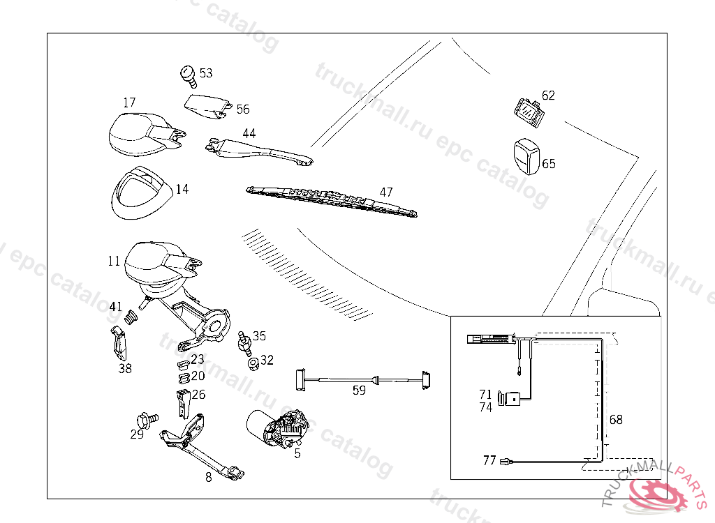 ELECTRIC CABLE WIPER MOTOR, A 394036 X 004166 EXCEPT CODE 807 ALSO INSTALLED IN VEHICLE TO A 394035 / X 004165 WITH CODE 808