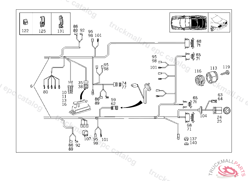 CABLE HARNESS , A 698508 X 012426 EXCEPT CODE 808 ALSO INSTALLED IN VEHICLE TO A 698507, X 012425 WITH CODE 809 ALSO INSTALLED IN A 654636, A 704016 FIRST EXHAUST STOCK OF OLD PARTS UP TO IDENT NO.: A 843747 X 019420 EXEPT ON VEHICULES WITH CODE 059
