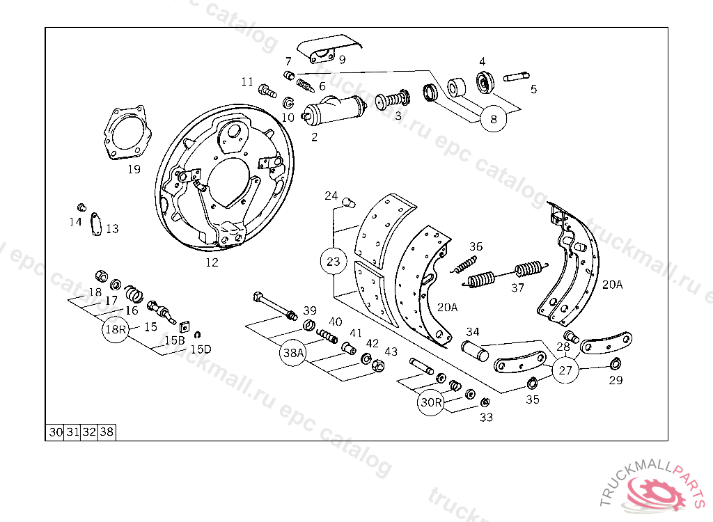 REPAIR KIT BRAKE SHOE SHACKLE, UP TO CHASSIS 910369 ALSO INSTALLED ON 500001-501455,FROM CHASSIS 910370 AND 501456-599999 SEE SPARE PARTS LIST 103