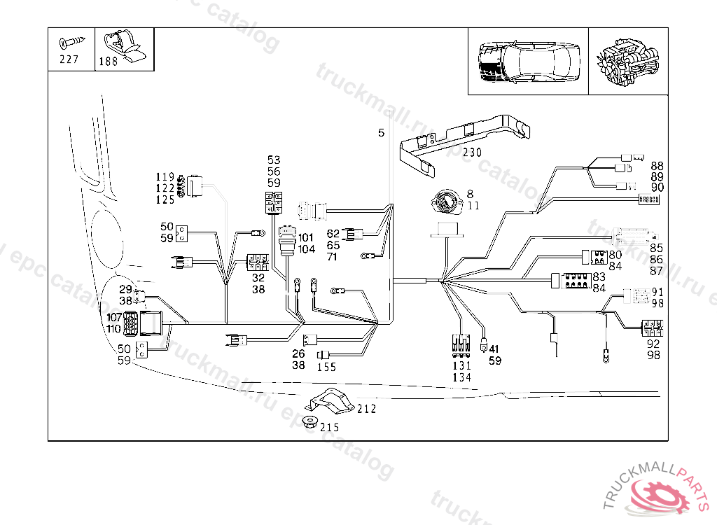 CABLE HARNESS ENGINE CABLE HARNESS,BODY MOUNTED, A 177063 J 024801 EXCEPT CODE 807 ALSO INSTALLED IN VEHICLE FROM A 177064, J 024802 WITH CODE 806