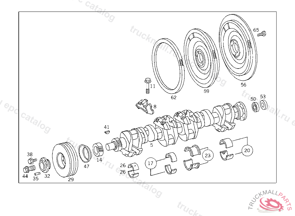 CRANKSHAFT WITH CRANKSHAFT BEARING SHELLS AND CONNECTING ROD BEARING SHELLS, 355 586 39 03 LAPPED BEARING TO BE ORDERED SEPARATELY AND TO BE INSTALLED IN PLACE OF THE ONE INCLUDED IN RANGE OF DELIVERY