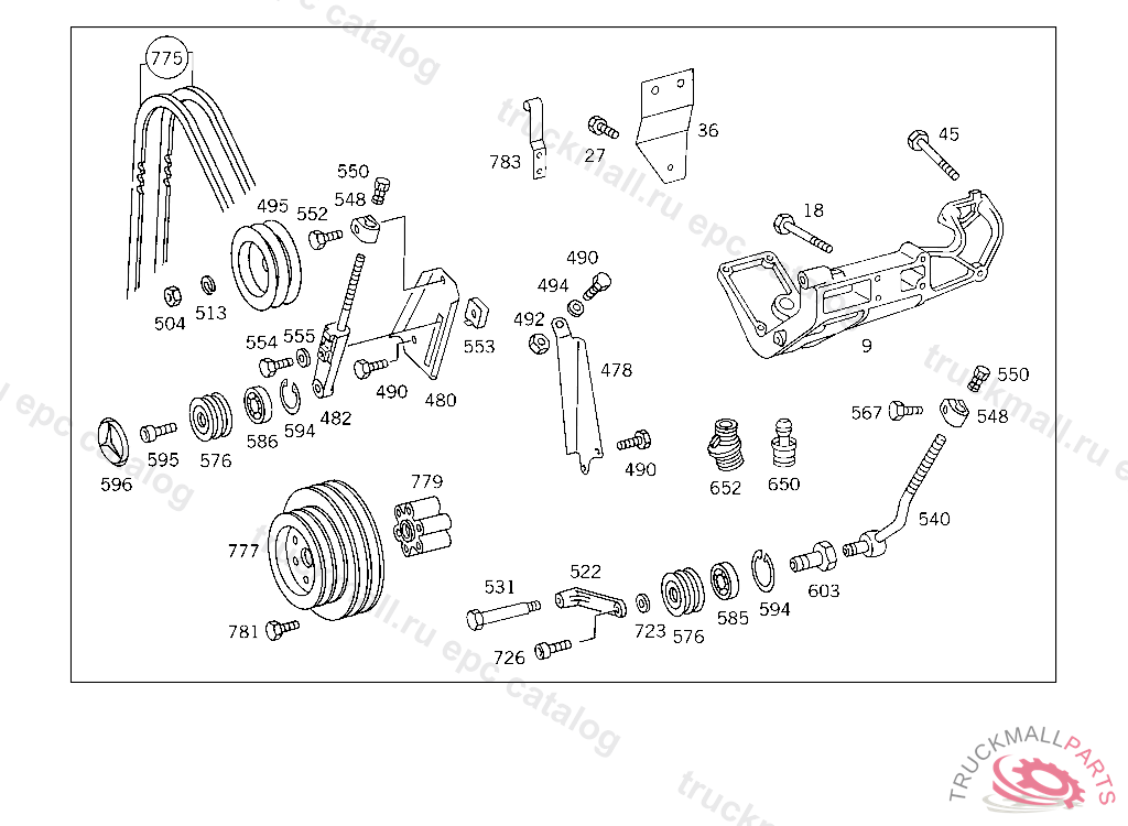HEXAGON HEAD BOLT. SCREW TIGHTENER PULLEY SUPPORT AND BRACKET TO FUEL-FILTER/AIR-COMPRESSOR SUPPORT, UP TO ENGINE 238225 YEAR OF MANUFACTURE 1992