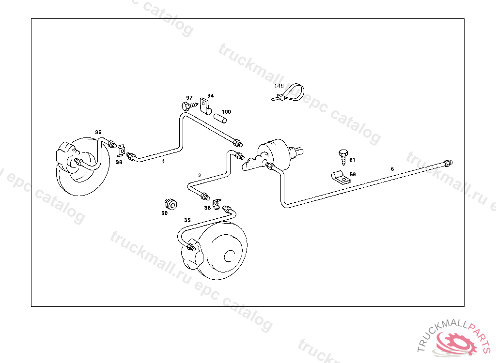 LINE FROM MASTER CYLINDER TO ADAPTER FITTING, 000 193701 003 097469 086 006508 093 007717 102,103 209243 183 013349 190 020074 193 000014 200 006559 283 001514 INAPPLICABLE TO ANTI-LOCK BRAKING SYSTEM (ABS)