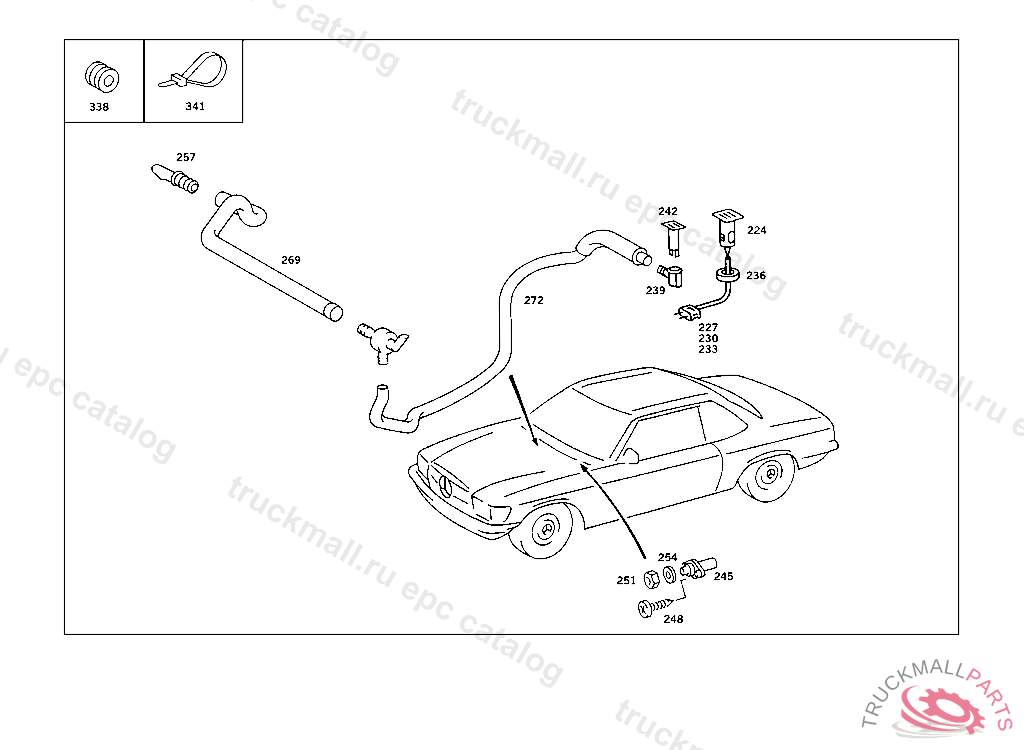 HOSE BETWEEN AIR-BLAST NOZZLE AND FRONT PANEL PILLAR, 107.042 011568 EXCEPT FOR 010107,010328,010378,011305,011341,011348,011356,011418,011426,011434,011436,011444,011454,011455, 011464,011472,011473,011476,011480,011494,011496,011503,011504,011513,011514,011518,011519,011520, 011526,011528,011531,011533,011535,011537,011538,011539,011541-011567. 107.045 009131 EXCEPT FOR 004581,007703,008068,008344,008400,008401,008455,008627,008724,008836,008842,008885,008911,008920, 008925,008958,008967,008989,008994,009001,009100,009128. 107.046 000986 EXCEPT FOR 000518,000621,000841,000897,000899,000921,000933,000936,000938,000940,000942,000944,000956,000964, 000967,000970,000974-000985. FROM CHASSIS SEE STANDARD VERSION