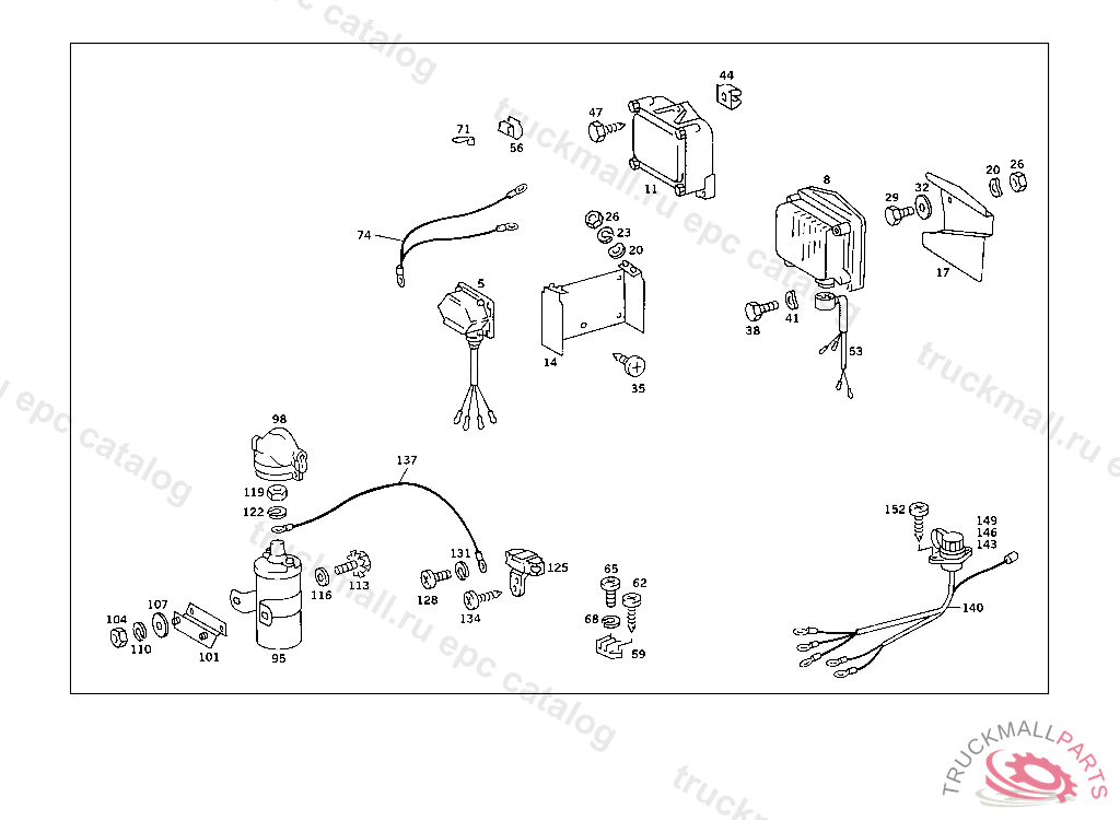 SUPPRESSOR HOUSING IGNITION COIL, 003 114241 007 SWEDEN 105492 007 SWITZERLAND 104788 102 356391 103 358799 105 NOT FOR SWEDEN 288917 EXCEPT FOR 290205 105 SWEDEN 268063 200 121389