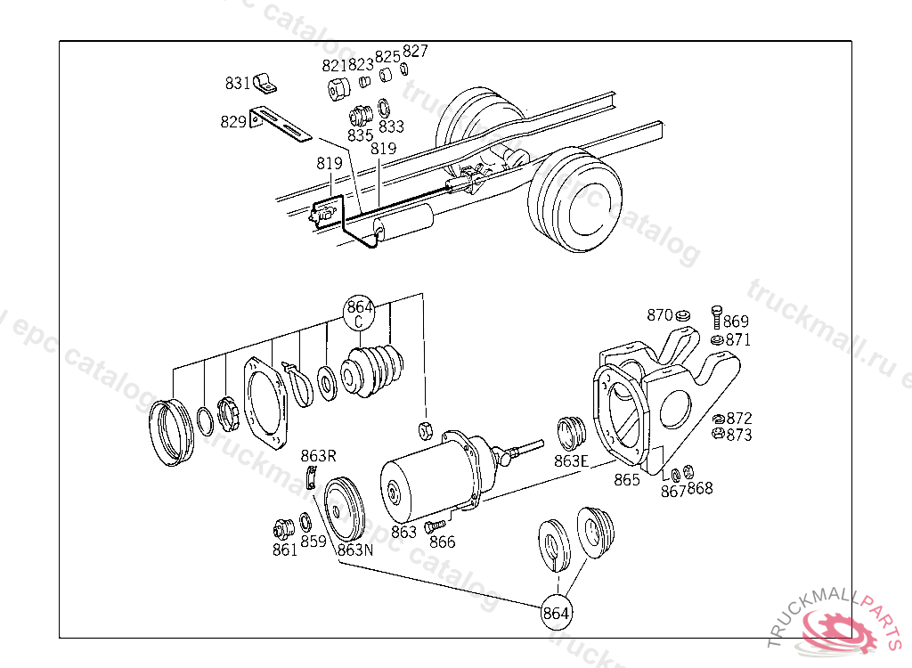 BEARING BRACKET , UP TO CHASSIS 674067 WITH THE EXCEPTION OF 673430,673432,673497,673550,673576,673628,673629,673630,673631,673890,673916,673917 ,673918,673921,673922,673927